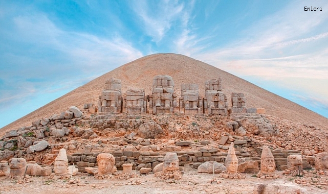 Nemrut Dağı, Adıyaman'da yer alan ve UNESCO Dünya Mirası listesinde bulunan bir alandır. M.Ö. 1. yüzyılda Kommagene Kralı I. Antiochos tarafından yaptırılan devasa heykeller ve tümülüs, antik dönem sanatının önemli örneklerindendir. Heykeller, tanrılar ve kralın portrelerini içerir ve tarihi önemi nedeniyle yerli ve yabancı turistlerin ilgisini çekmektedir.